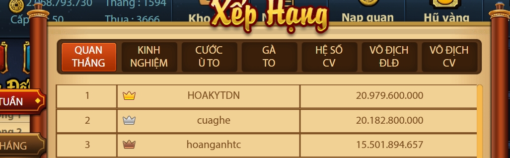TOP Đả Lôi Đài: tuyetlanh1308, ddi233 (2 Lần)
