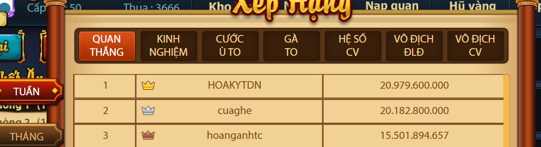 - Chúc mừng thành viên ongtrum78 vô địch giải đấu Chắn VIP Cuối Tuần
