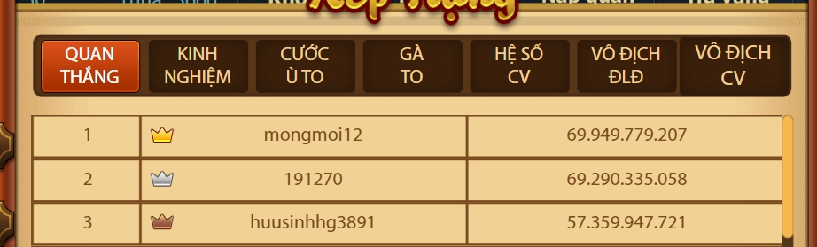 - Chúc mừng thành viên coginuadau123 vô địch giải đấu Chắn VIP Cuối Tuần