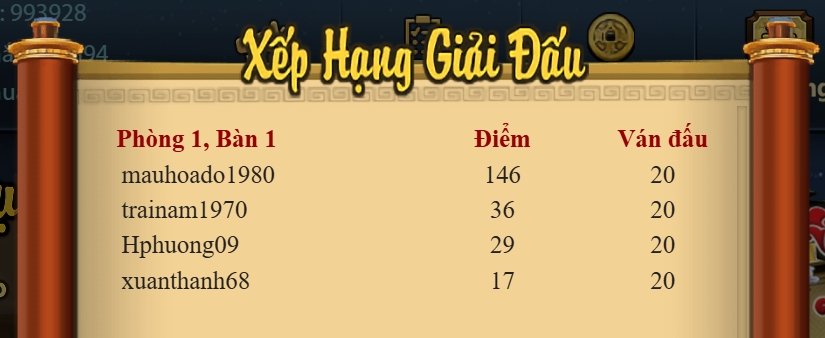 - Chúc mừng thành viên coginuadau123 vô địch giải đấu Chắn VIP Cuối Tuần