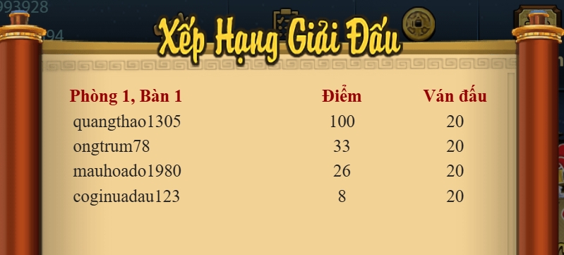 - Chúc mừng thành viên quangthao1305 vô địch giải đấu Chắn VIP Cuối Tuần 2026