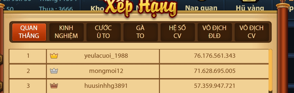 1.Chúc mừng thành viên quangthao1305 vô địch giải đấu Chắn VIP Cuối Tuần 2026