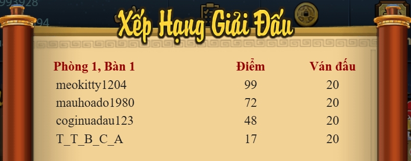 - Chúc mừng thành viên meokitty1204 vô địch giải đấu Chắn VIP Cuối Tuần 2026