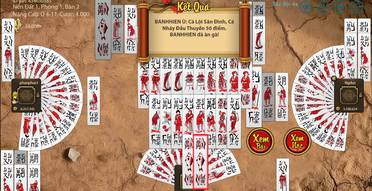 2. Ván bài hay: BANHHIEN Ù: Cá Lội Sân Đình, Cá Nhảy Đầu Thuyền 50 điểm.