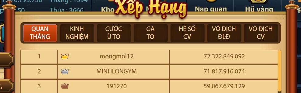 1.Chúc mừng thành viên meokitty1204 vô địch giải đấu Chắn VIP Cuối Tuần 2026