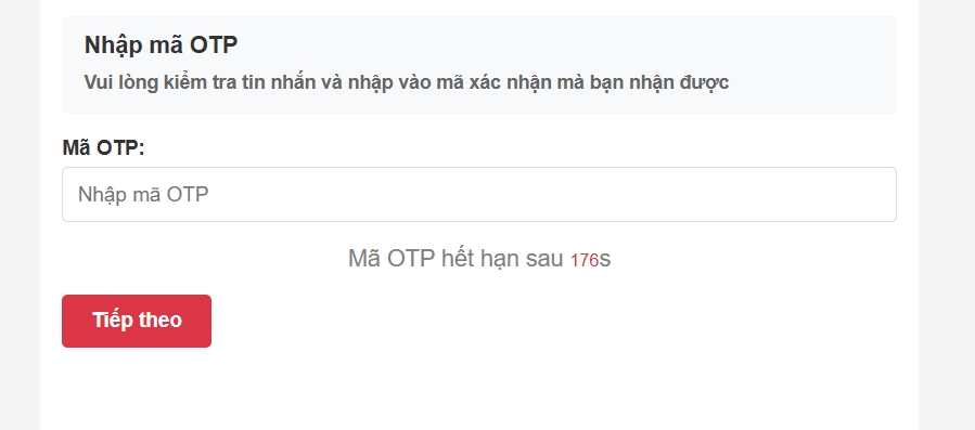 - Sau đó bạn nhập số điện thoại đã đăng ký vào ô để lấy mã OTP được gửi về điện thoại
