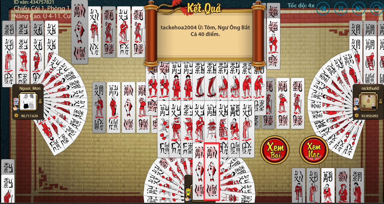 2. Ván bài hay: tackehoa2004 Ù: Tôm, Ngư Ông Bắt Cá 40 điểm.