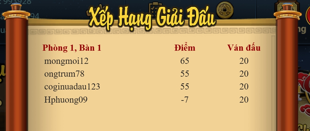 - Chúc mừng thành viên mongmoi12 vô địch giải đấu Chắn VIP Cuối Tuần 2026