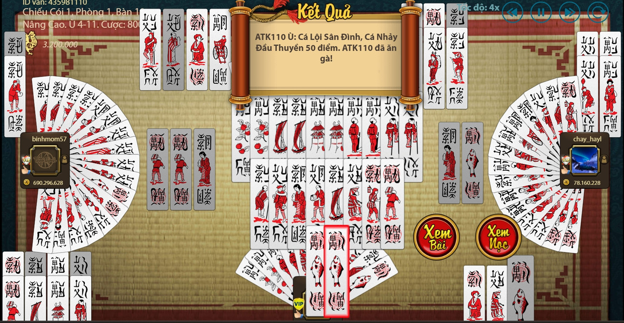 Ván Bài Hay:ATK110 Ù: Cá Lội Sân Đình, Cá Nhảy Đầu Thuyền 50 điểm