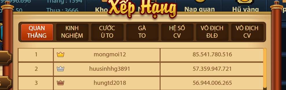 1.Chúc mừng thành viên ongtrum78 vô địch giải đấu Chắn VIP Cuối Tuần 2026
