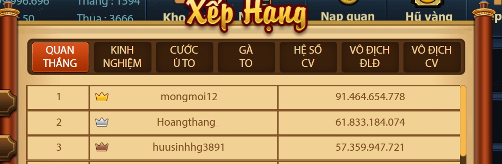 3. Vinh danh top 3 cao thủ trong game